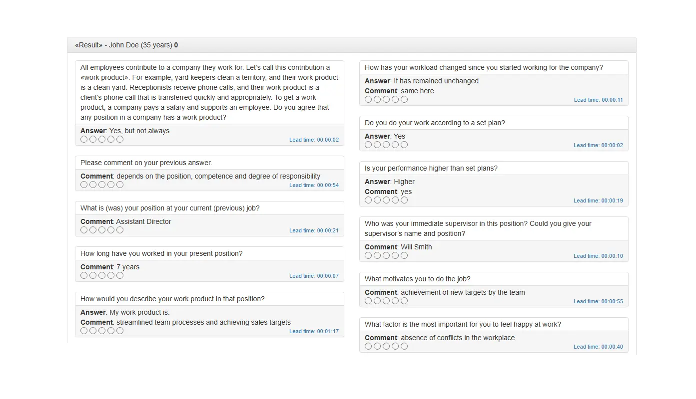 This is how the candidate’s answers to the “Result” test questions are displayed.
